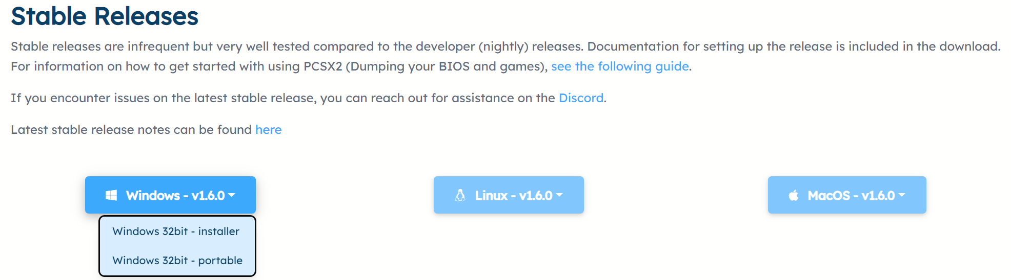 The official source for the latest stable and nightly builds (aka dev builds) for PCSX2 on all supported platforms