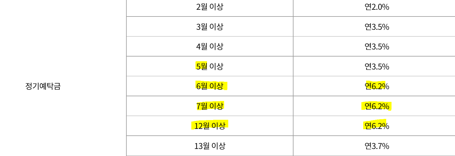 상품명: 정기예탁금(6개월~12개월 연 6.2%)
