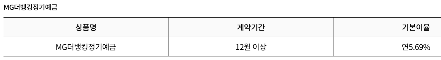상품명: MG더뱅킹정기예금(12개월 이상 연 5.69%)