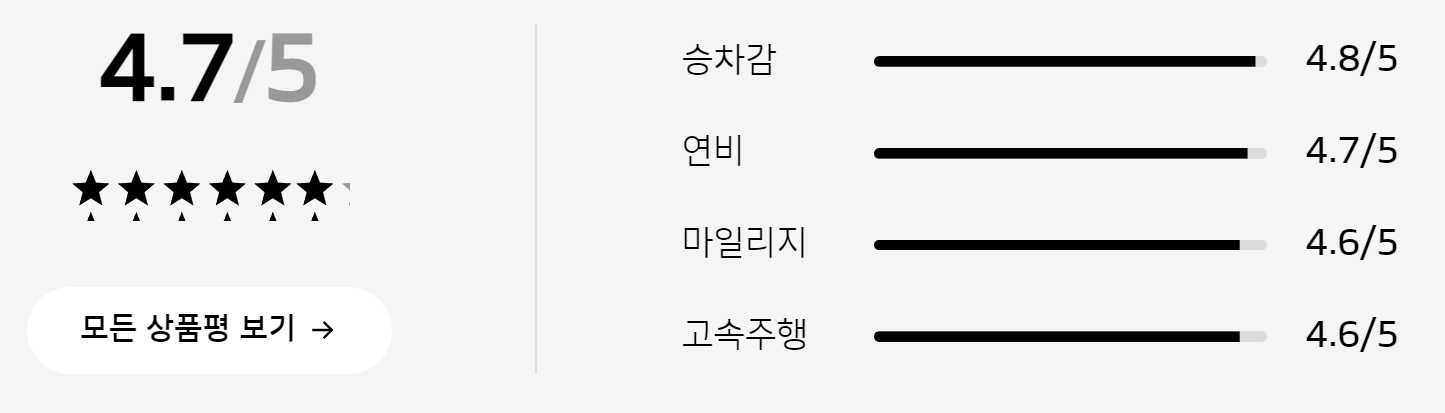 - 고속 주행 안정감이 좋다.