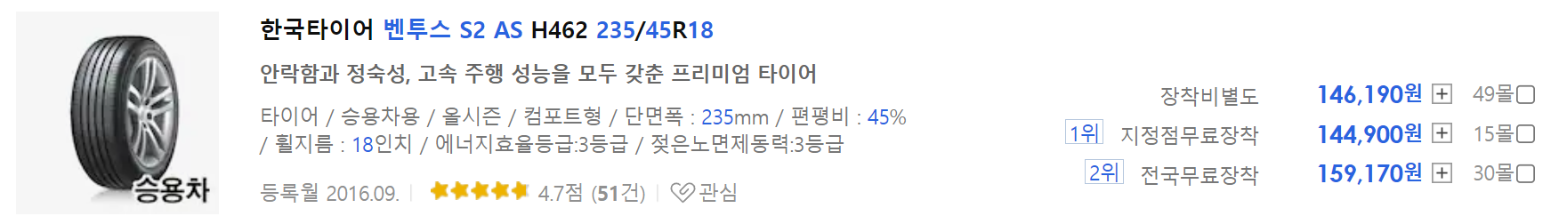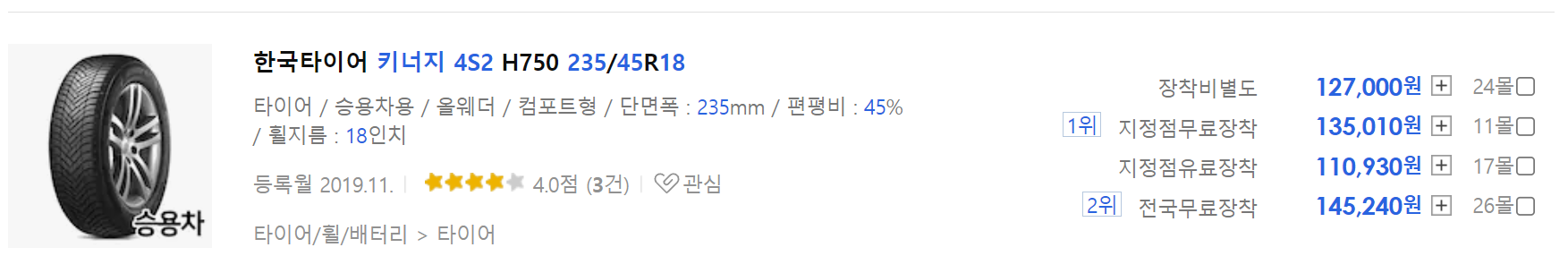 - 가격 (235/45/18 기준)