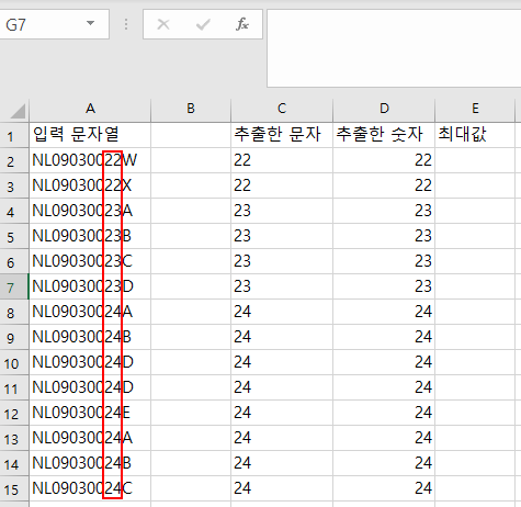 해당 엑셀 맨 끝의 두 자리 숫자만 추출하여 최대값을 구하는 함수를 알고 싶습니다.