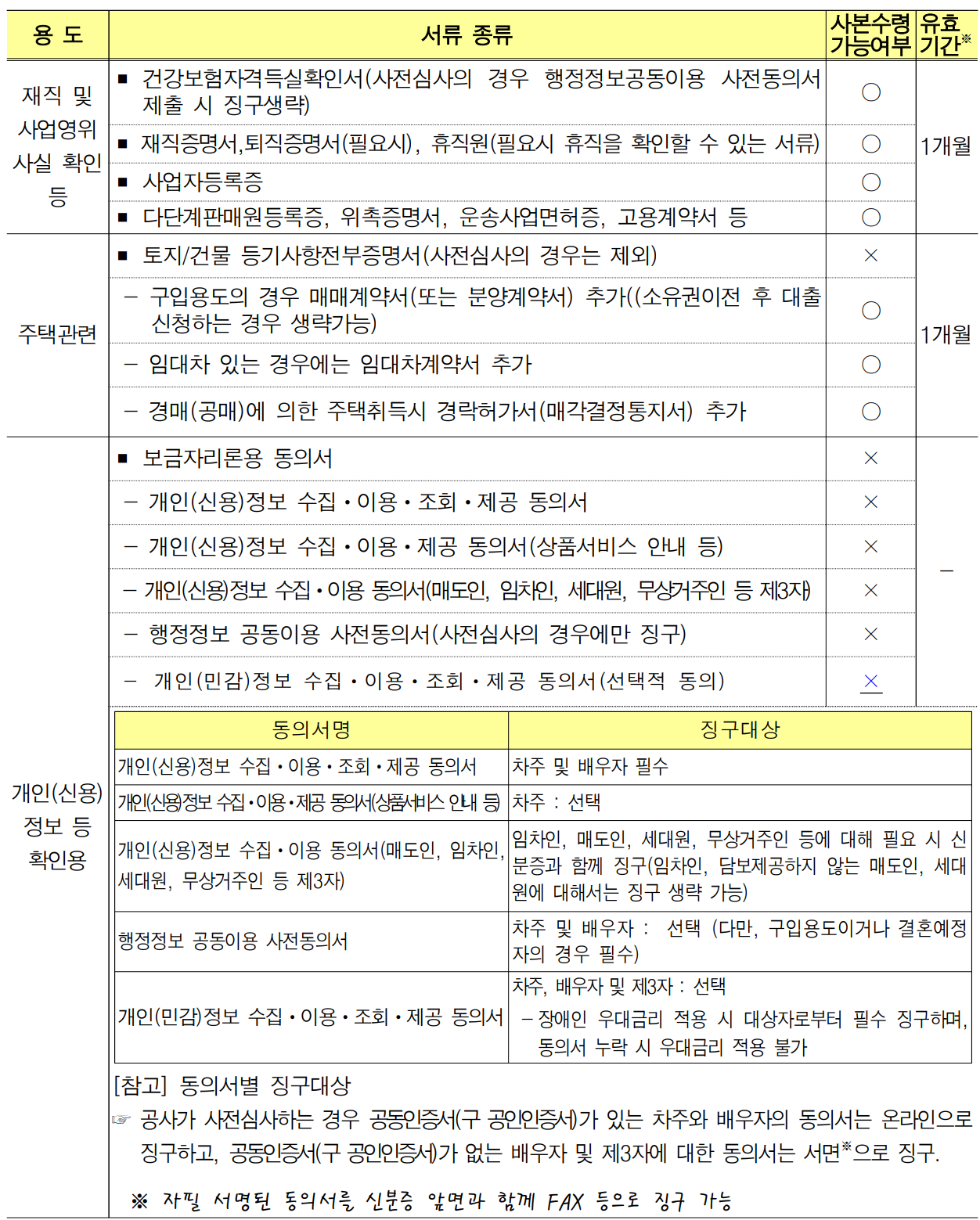 ※ 한국주택금융공사가 사전심사 하는 경우에는 승인일 현재 부부가 공사 내규에 의한 채무관계자(동일 물건지로 공사 전세(월세) 자금 보증을 이용 중, 다만 보금자리론 대출 실행일까지 전세(월세)자금보증을 해지하는 경우는 이용 가능)로 규제되고 있는 경우 취급 불가