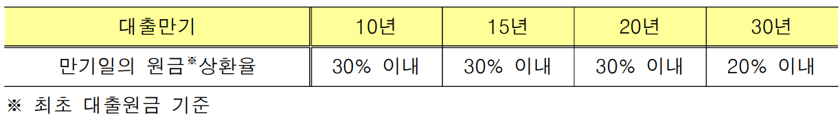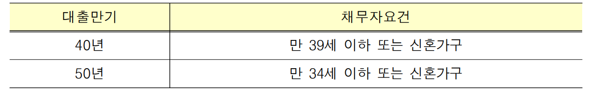 ※ 만 40세 미만 채무자 및 공사가 사전심사한 경우에만 허용하며, 원금상환이 시작되는 고정금리기간 중에만 적용. 단, 대출만기 50년은 적용 불가