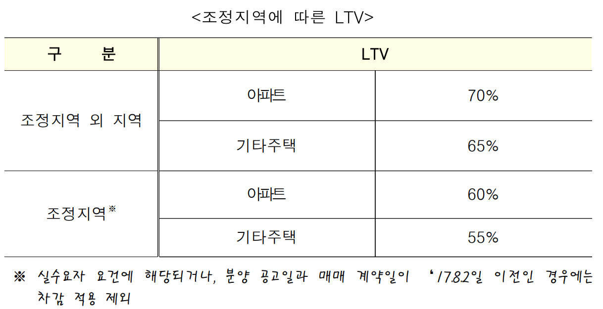 - LTV 최대 70% - DTI 최대 60%