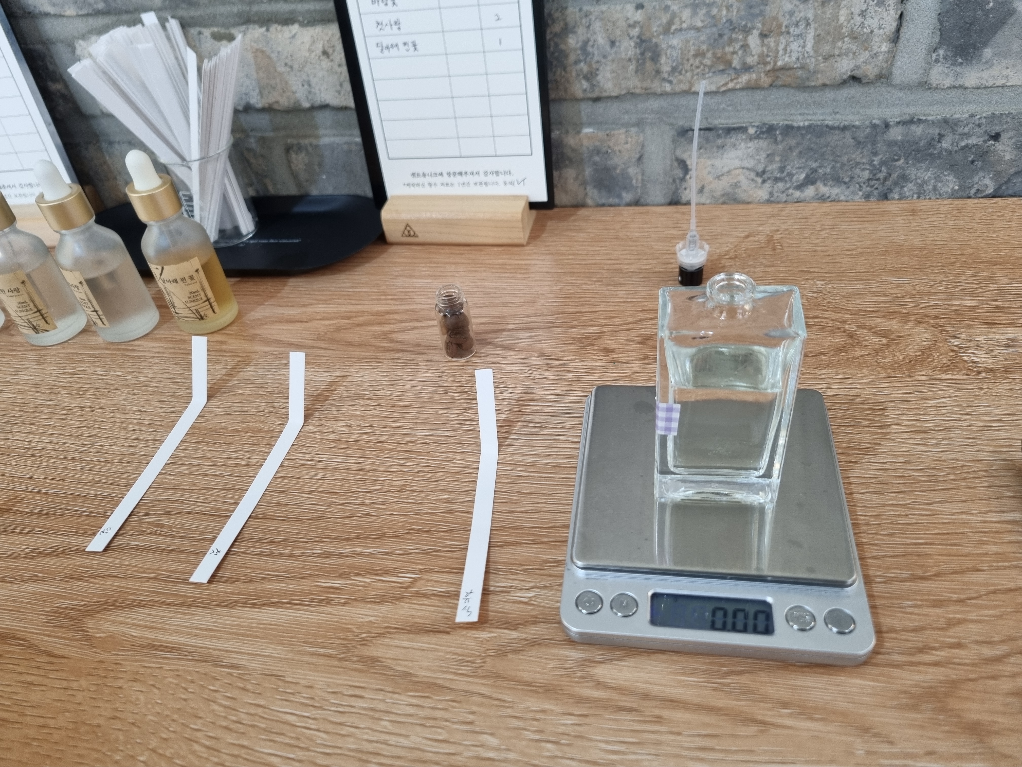 02. 향수 만들기 1단계 (베이스 선택)공방에서 향수를 만드는 과정은 다음과 같은 작업의 반복이다.