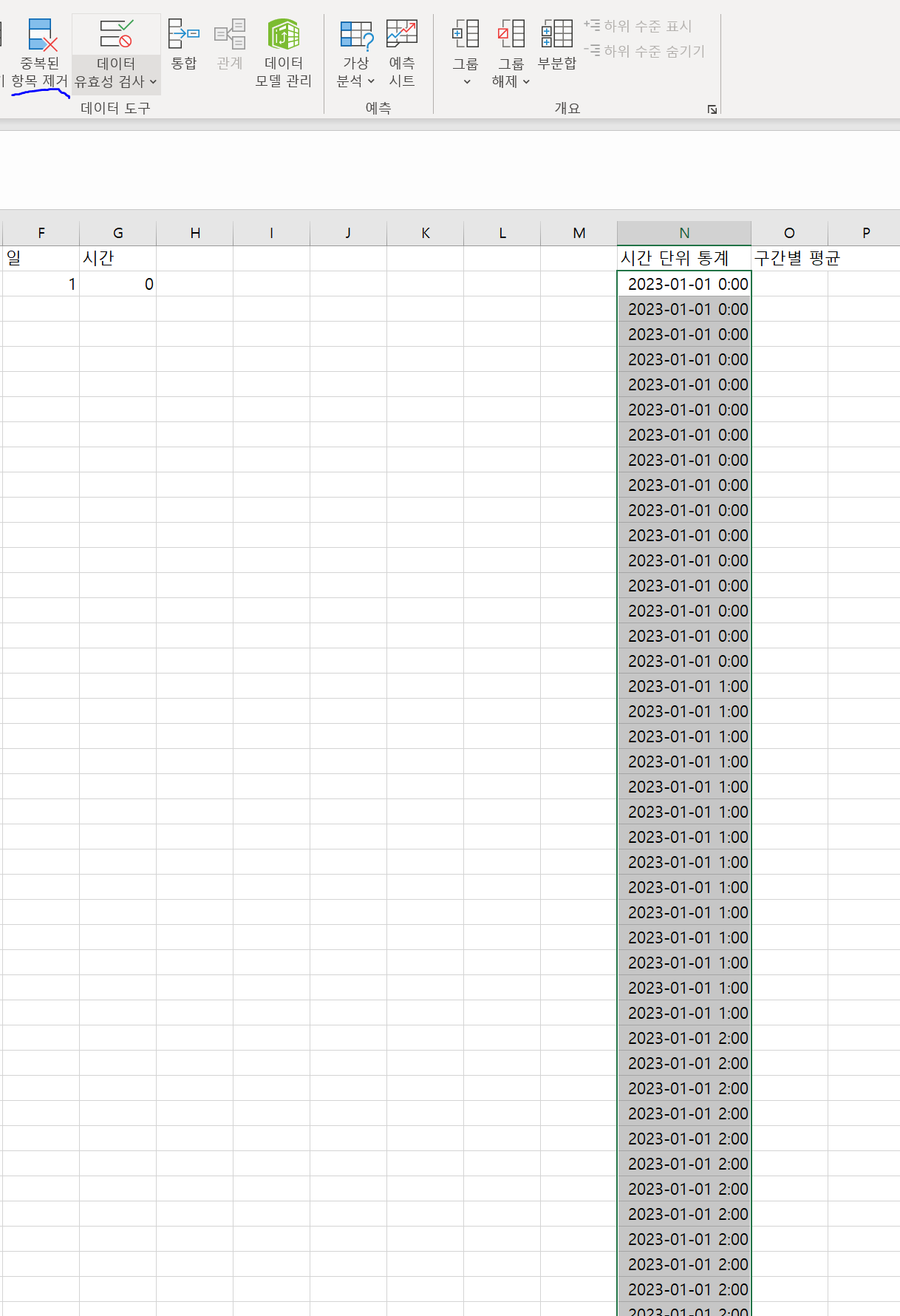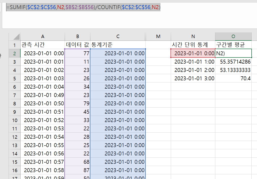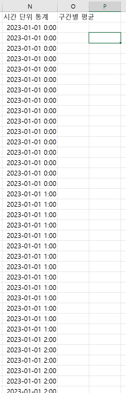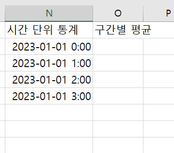 O열에는 구간별 평균값이 들어갈 예정이다.