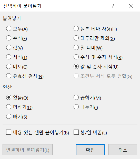 이제 C열을 모두 복사한 후, 선택하여 붙여넣기 (값+서식)으로 통계값이 있는 N열에 복사하자