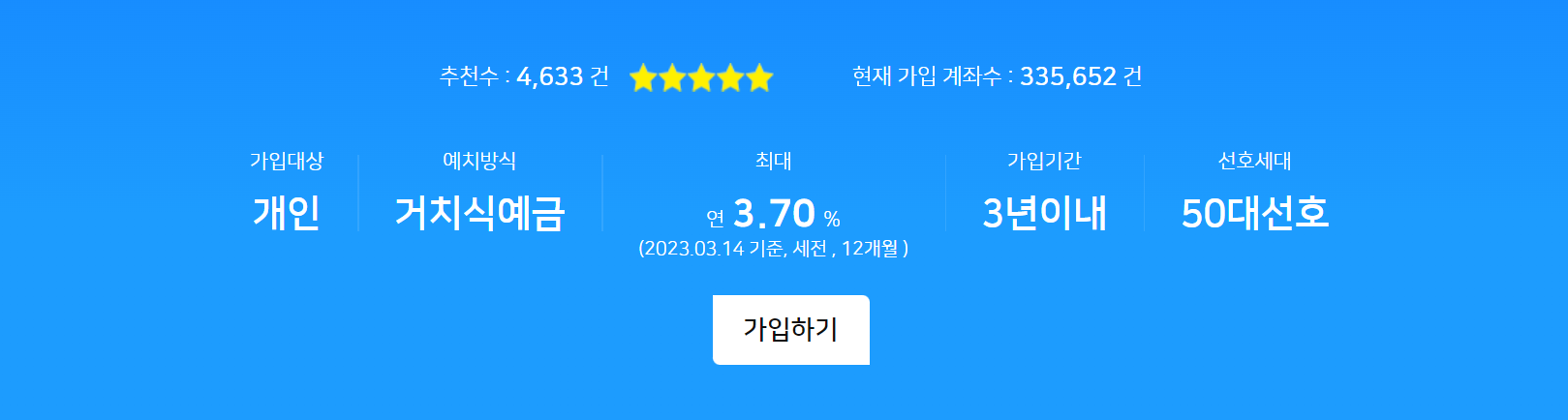 시중은행 예금 금리 높은 상품 (23/3/14 기준)카테고리 없음 2023. 3. 14. 21:36728x90