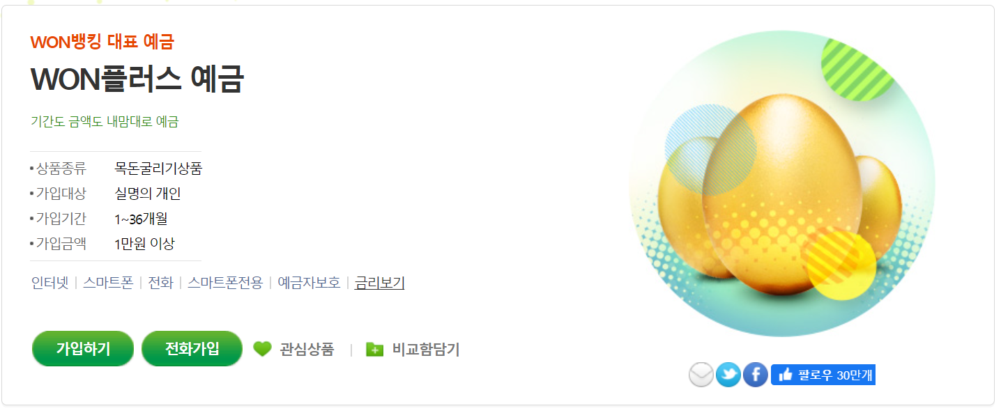 05. 우리은행우리은행의 "WON플러스 예금"의 경우 12개월 이상 24개월 미만 가입 시 연3.8%(세전)를 적용해준다. 11월에 조사했을 때보다 금리가 내려간 것을 확인하할 수 있다. 약 1.18% 금리가 내려갔다.