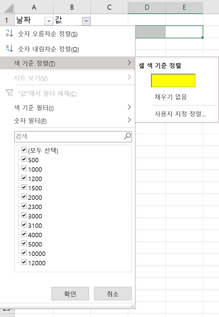 (2) 필터의 색 기준 정렬 이용