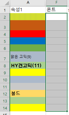 A열에 위와 같은 데이터가 있을 때, F열에 A열의 폰트명을 표기하는 작업을 해보자.