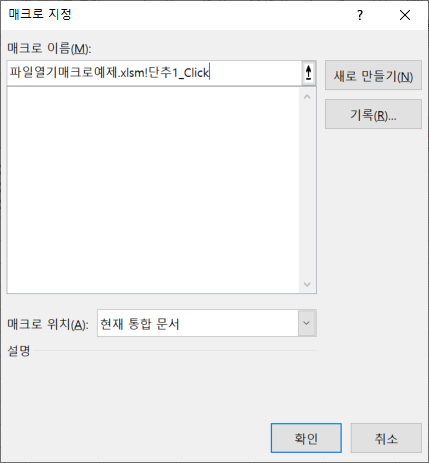 버튼을 선택 > 우클릭 > 매크로 지정을 선택한다.