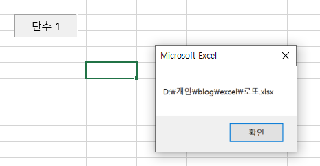 1234567891011Sub 단추1_Click()Dim fileName As VariantfileName = Application.GetOpenFilename("엑셀 파일(*.xlsx), *.xlsx")If fileName <> False ThenMsgBox fileNameEnd IfEnd Subcs (4) 버튼을 클릭한 결과