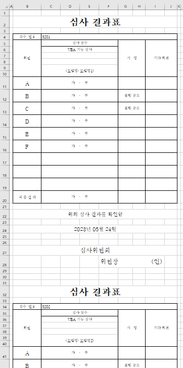 - 심사결과표: 출력할 심사표들이 들어갈 시트