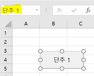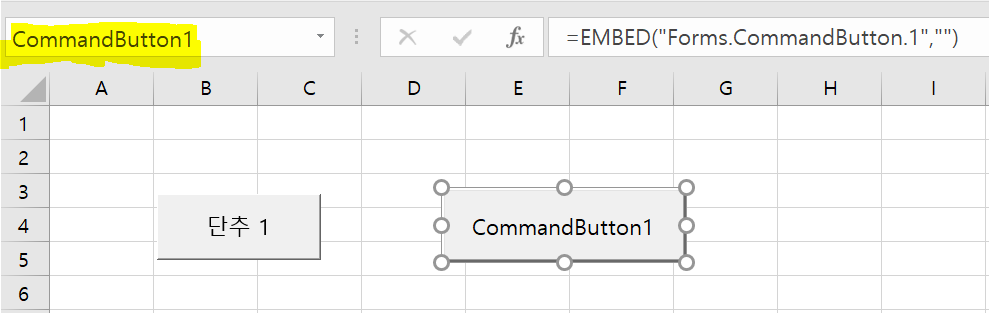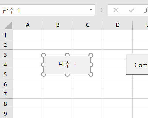 컨트롤의 이름도 기본 값이 "단추 1"로 부여되어 있다.