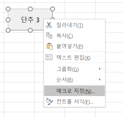 - 디자인모드>단추에서 마우스 우클릭>매크로 지정
