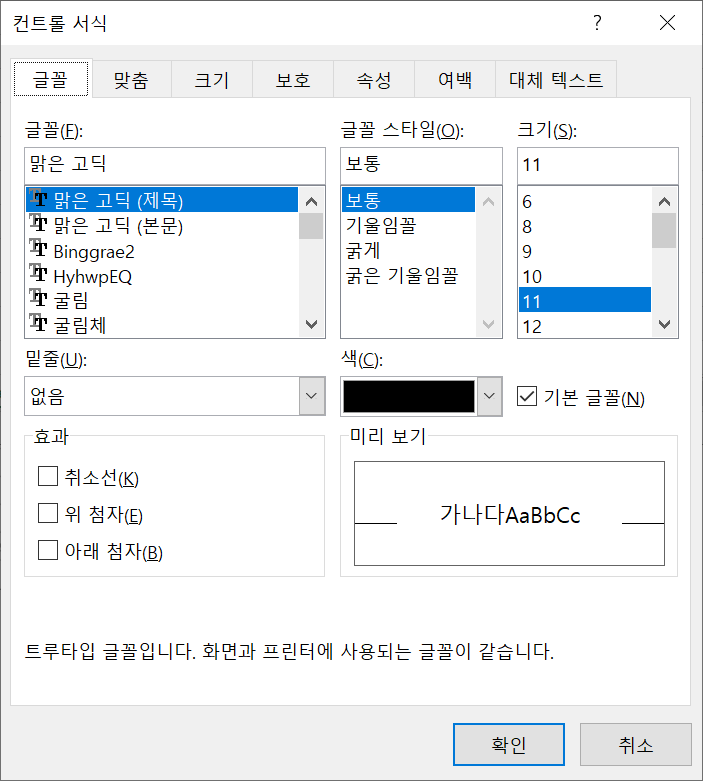엑셀에서 양식 컨트롤(Form Control)과 ActiveX컨트롤을 제공한다.