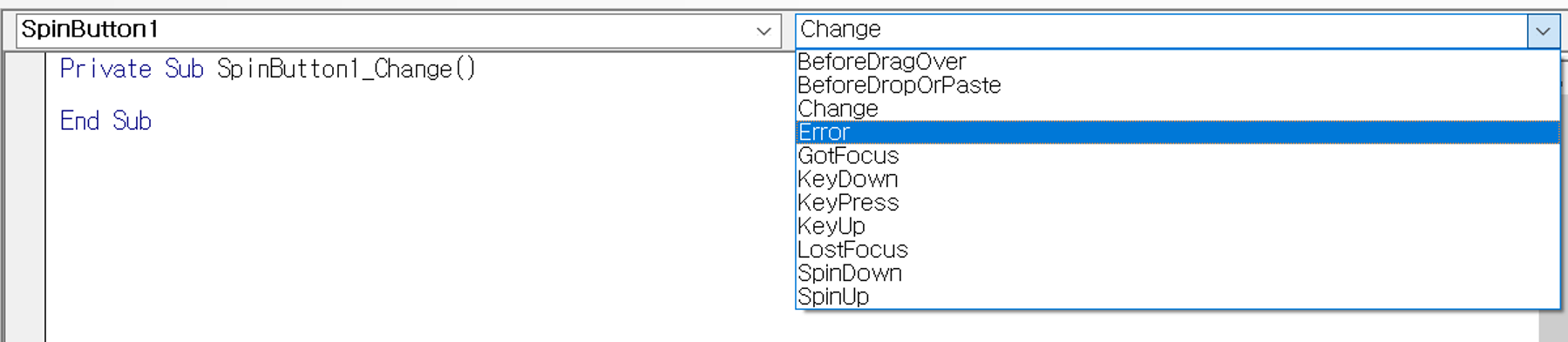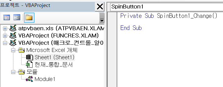 스핀단추(양식컨트롤) 스핀단추(ActiveX컨트롤) [모듈 / Sheet 에 있는 Sub 프로시저 안에서]