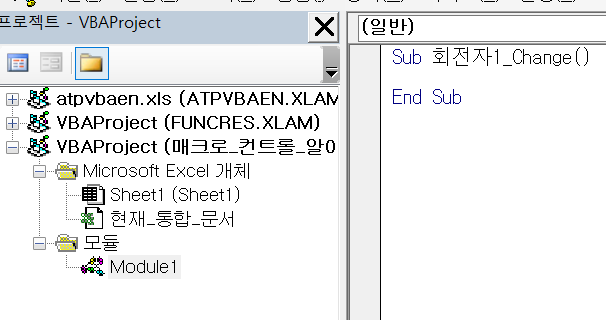 모듈이 추가되며 Sub 프로시저가 생성되는 것을 알 수 있다.