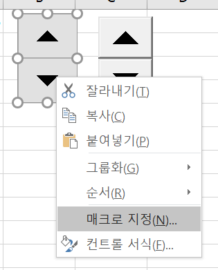 디자인모드 > 컨트롤 선택 > 우클릭 > 매크로 지정