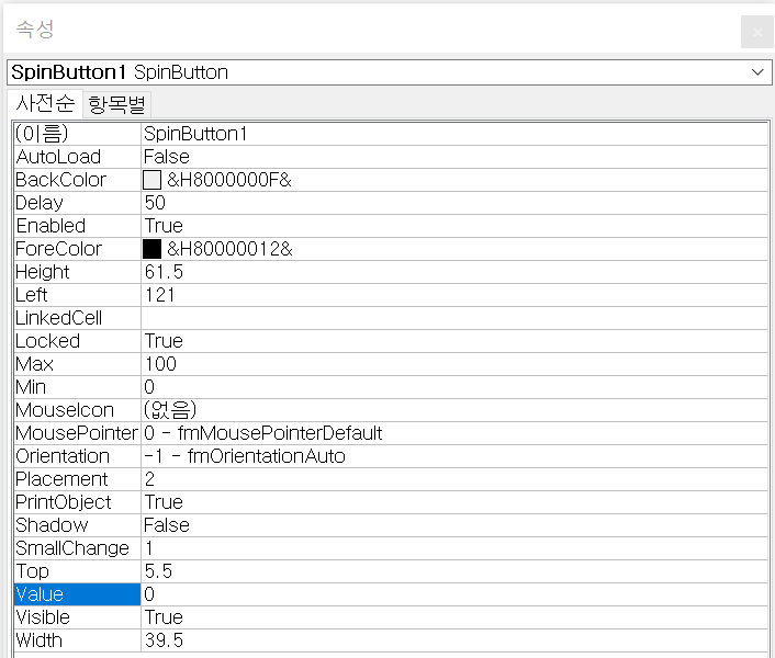 2) 스핀단추(ActiveX컨트롤)