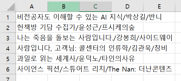 다음과 같이 특정 데이터가 작성되어 있는 상황에서 텍스트 나누기를 실행해보자.