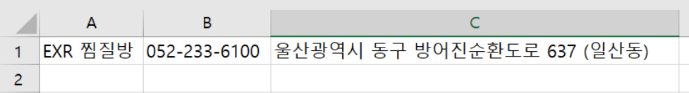 데이터 미리보기를 보면, 업체명, 전화번호, 주소가 분리되어 있는 것을 확인할 수 있다.