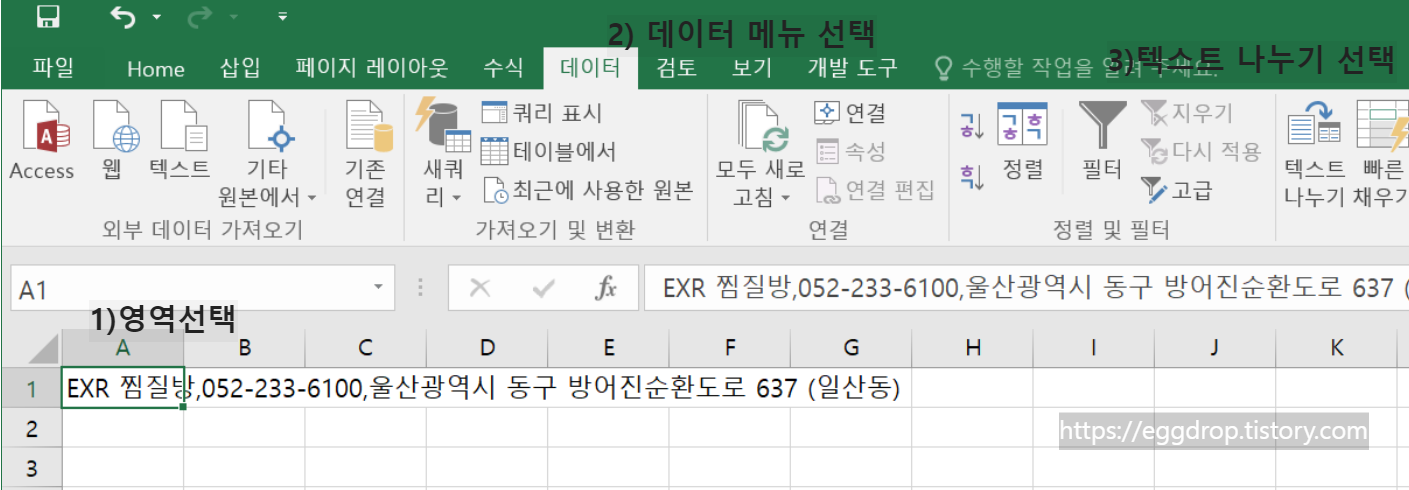 01. 엑셀에서의 텍스트 나누기