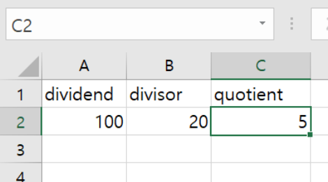 1234567891011121314Sub gotoExample0()Dim divisor As DoubleDim dividend As DoubleDim quotient As Doubledivisor = ActiveSheet.Cells(2, 2).Valuedividend = ActiveSheet.Cells(2, 1).Valuequotient = dividend / divisorActiveSheet.Cells(2, 3).Value = quotientEnd Subcs 활성화된 시트의 A2셀의 값으로 B2셀의 값을 나눈후에 C2셀에 저장하는 루틴이다.