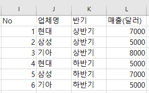 우리는 기업명 + 반기정보(상반기 or 하반기)로 그룹을 만들고 그 그룹의 매출을 합쳐야 한다.