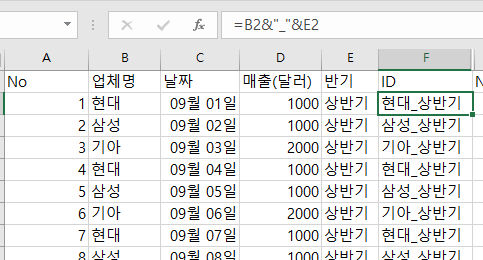 공동으로 합할 데이터에 그룹 아이디를 부여해보자. 기업명 + 상반기/하반기 로 부여할 수 있다.