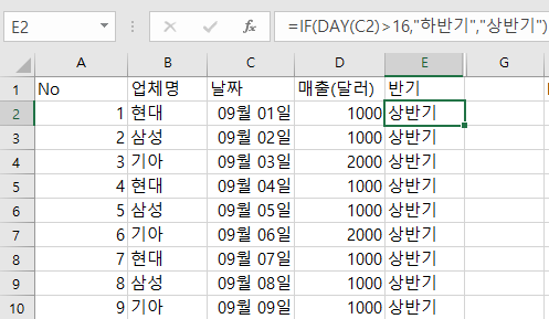 상반기/하반기의 구분은 IF 함수를 이용하여 구할 수 있다.
