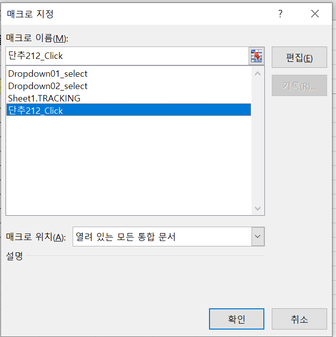 버튼은 엑셀 폼 컨트롤이므로 우클릭 후에 매크로 지정을 통해 이벤트 핸들러를 연결할 수 있다.