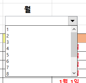 월에 해당하는 콤보박스를 편의상 콤보박스(월)로 부르겠다.