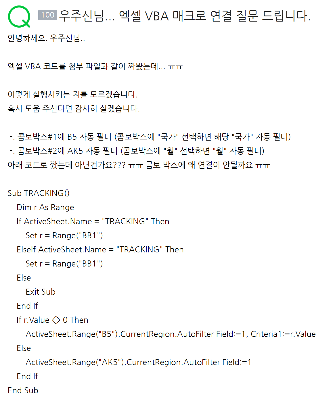 이 문제를 해결하기 위해서는 콤보 박스와 AutoFilter에 대한 지식이 필요하다.