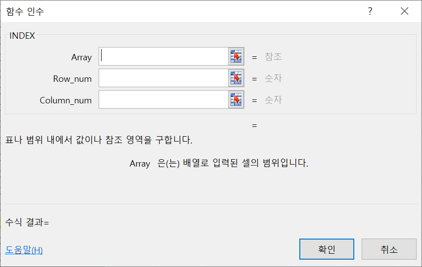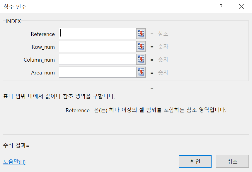 INDEX 함수는 다음과 같이 두 가지 형태의 파마리터를 사용할 수 있다.