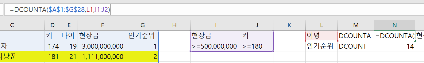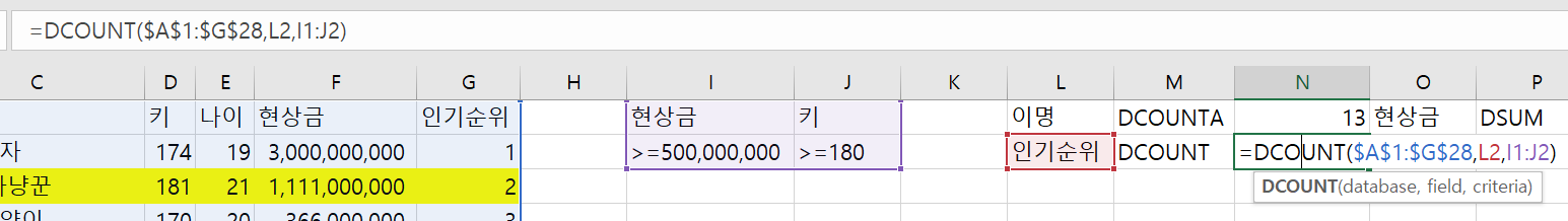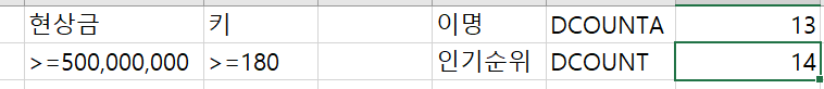 - 01. DCOUNT 함수, DCOUNTA 함수