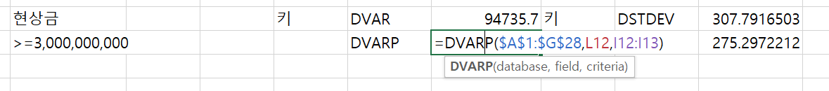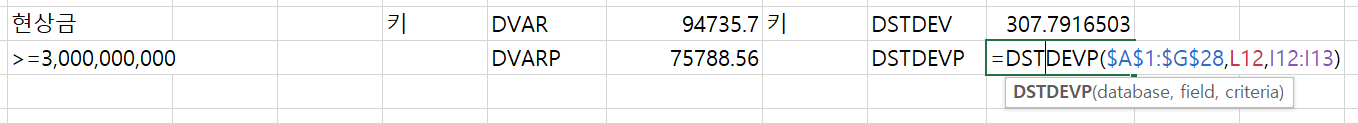 (2) DSTDEVP 함수