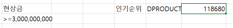 04. DPROUDCT 함수Criteria를 만족하는 레코드들에 한하여, Field로 지정한 열의 모든 값에 대한 곱을 구한다.