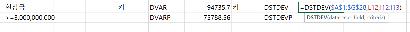 (1) DSTDEV 함수