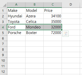 활성화되어 있는 엑셀 프로그램에서 선택되어 있는 셀을 나타낸다.