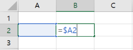 $A3의 내용을 오른쪽 옆셀로 복사한 경우, $B3으로 고정되고