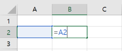 F2에 수식 =A1 입력 셀 F2에 "=A1" 이라는 수식을 입력하면 A1에 있는 "가"라는 문자가 F열에 출력될 것이다. 이 상황에서 F2셀을 복사한 후에
