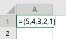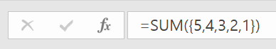 위의 배열은 {5, 4, 3, 2, 1}을 의미한다. 엔터를 입력하여 값을 입력할 경우, 첫 번째 값인 5가 출력된다.이 값을 SUM 함수에 입력해보자.