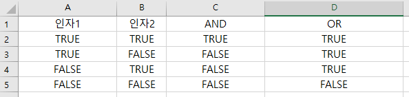 - OR함수는 입력받은 모든 논리값에 대한 OR연산 결과를 반환한다.