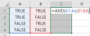 우리가 원하는 동작은 AND(TRUE, TURE)의 값이 TRUE여야 하지만, 해당 연산은 FALSE로 나온다. AND 함수와 OR함수는 배열에 대한 개별 연산을 지원하지 않는다.