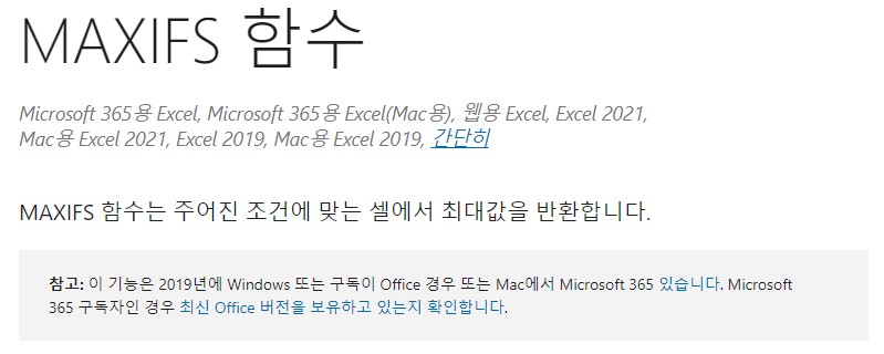 위의 그림에서 알 수 있듯이, 엑셀 구버전에서는 MAXIFS 함수를 사용할 수 없다.
