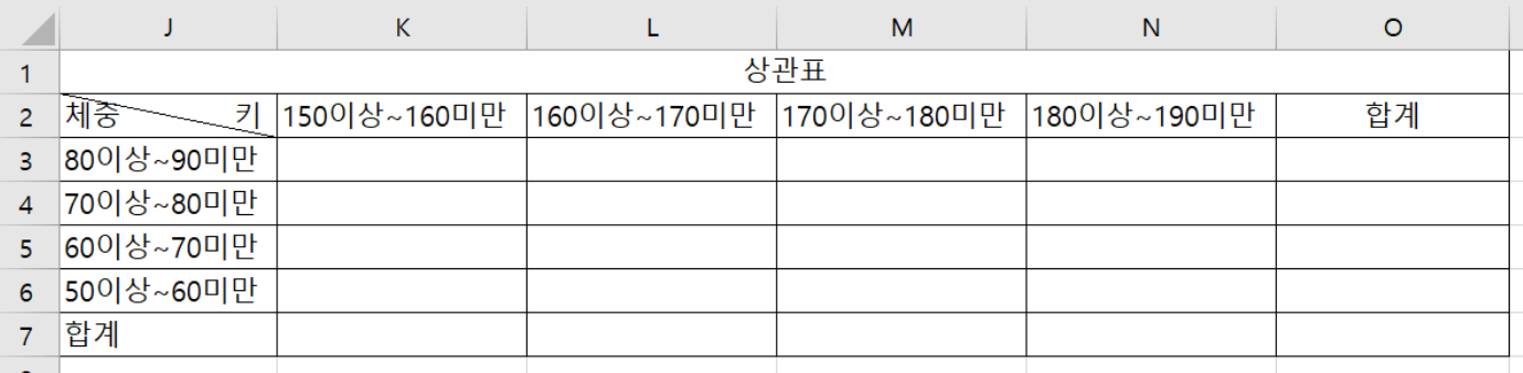 - 상관표는 COUNTIFS로 해결하기는 힘들것으로 보인다. 배열수식의 논리식으로 해결해보자.