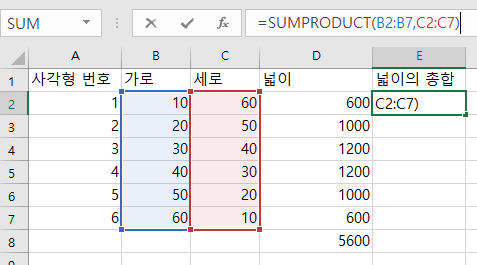 이번에는 SUMPRODUCT함수를 사용해보자.